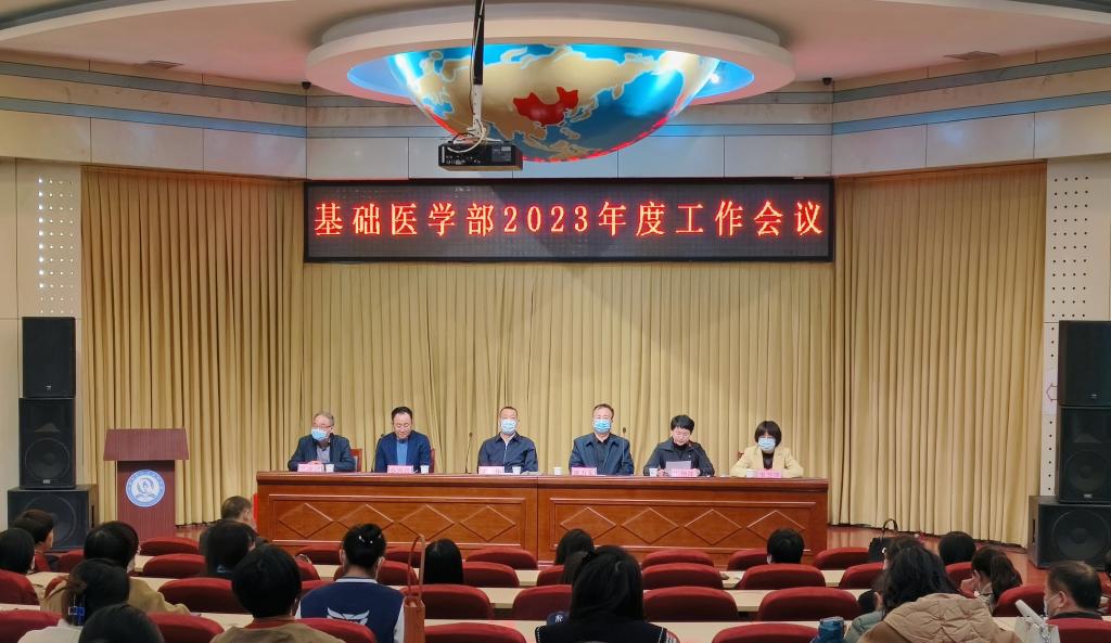 会上,基础医学部主任乔海兵作了题为“夯实基础,启航医技新征程;凝练特色,引领科教再跨越”的2023年度工作报告。报告全面回顾了基础医学部2022年工作,重点总结了在学习宣传贯彻党的二十大精神、疫情防控、教育教学改革、人才引育、课程思政、科学研究等方面取得的突出成绩。报告指出,2023年基础医学部将按照学校第四次党代会确定的“1359”行动方案,深化改革,强化内涵,重点在党建引领、师资队伍建设、学科建设、专业建设、实验室建设、学生管理等方面下功夫,打造品牌项目,推出重点活动,为把英国365建成具有区域影响力、特色鲜明、高水平的本科医学院校而努力奋斗。报告强调,做好2023年各项工作,一要把方向、识大局,深入学习宣传贯彻习近平新时代中国特色社会主义思想和党的二十大精神;二要瞄靶心、狠发力,落实立德树人根本任务,践行为党育人、为国育才初心使命;三要守底线,铸信仰,加强师德师风建设;四要强目标、保落实,深入贯彻落实党风廉政建设要求,认真履行全面从严治党的责任,提升党建工作质量,以党建新成效推动事业新发展。