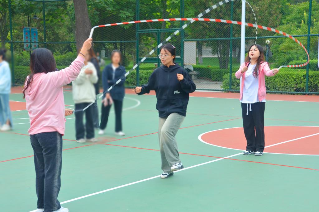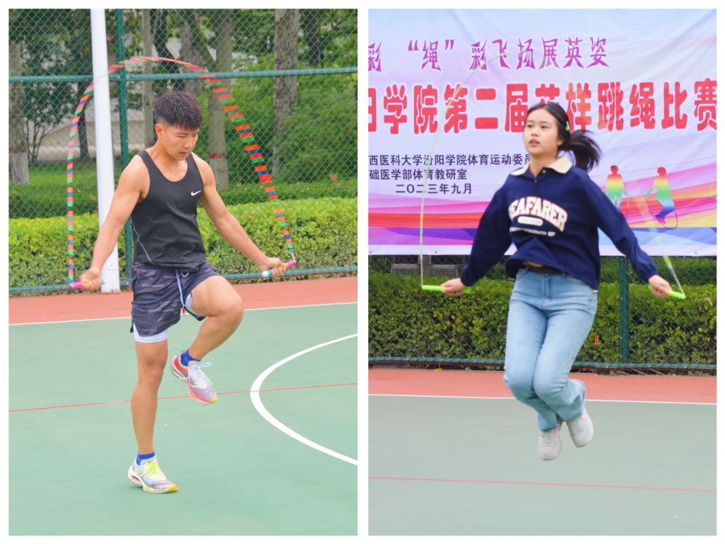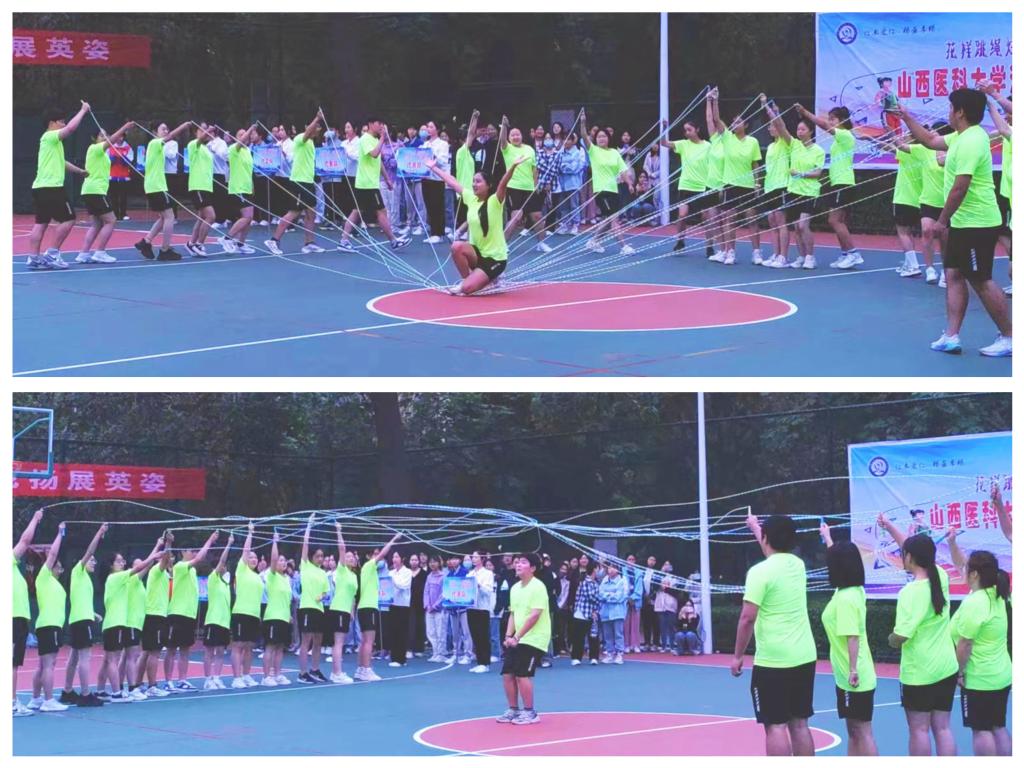 顽强拼搏显身手,绳彩飞扬展英姿。每个参赛者都在赛场上挥洒汗水。绳如虹飞转,人似蝶翩跹。同学们使出浑身解数,不停地挥动着双臂,脚尖如蜻蜓一般轻盈地点地、跳跃,争分夺秒,穿梭在绳子之中。激情与紧张同在,友谊与竞争共存。绳子舞出了青春的色彩,舞出了新时代青年的朝气蓬勃,舞出了汾院学子坚韧不拔、吃苦耐劳的医学生品格。裁判们秉持着公平公正的原则,认真为参赛者们记录成绩。场下的观众大力地为场上的运动员们加油。篮球场被呐喊声和欢笑包围,整个校园呈现出一片阳光、快乐、健康、向上的和谐景象。