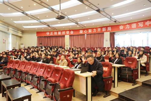 会上,校党委副书记、院长孟小平作了题为《守正创新担使命,凝心聚力开新局,奋力谱写中国式现代化建设的汾院新篇章》的学校工作报告。报告全面回顾了学校2023年的工作:一是全面加强党的领导,忠实践行“两个维护”。二是全面深化教育教学改革,落实立德树人根本任务。三是全面抓牢人才第一资源,提升师资队伍整体素质。四是全面实施科研兴校战略,强化医教研协同创新。五是全面攻坚基础设施建设,办学条件明显改善。六是全面融入区域社会发展,充分发挥高校职能。七是全面加强校园文化建设,推进文化传承创新。学校在党的建设、人才培养、师资队伍、教学科研、办学条件、服务社会、校园文化等方面取得了新进展和新突破。同时,报告总结了取得成绩的四条经验和学校目前存在的四方面的困难,对2024年的总体工作进行了部署安排。报告指出,2024年要立足工作实际,把握重点、握指成拳、系统发力,做好八方面的工作:一是全力完成重点工作;二是持续深化思政教育铸魂;三是紧盯应用型人才培养;四是抓实学科科研提升;五是提升服务社会能力;六是优化人才引育环境;七是提升管理服务能力;八是强化政治建设领航。