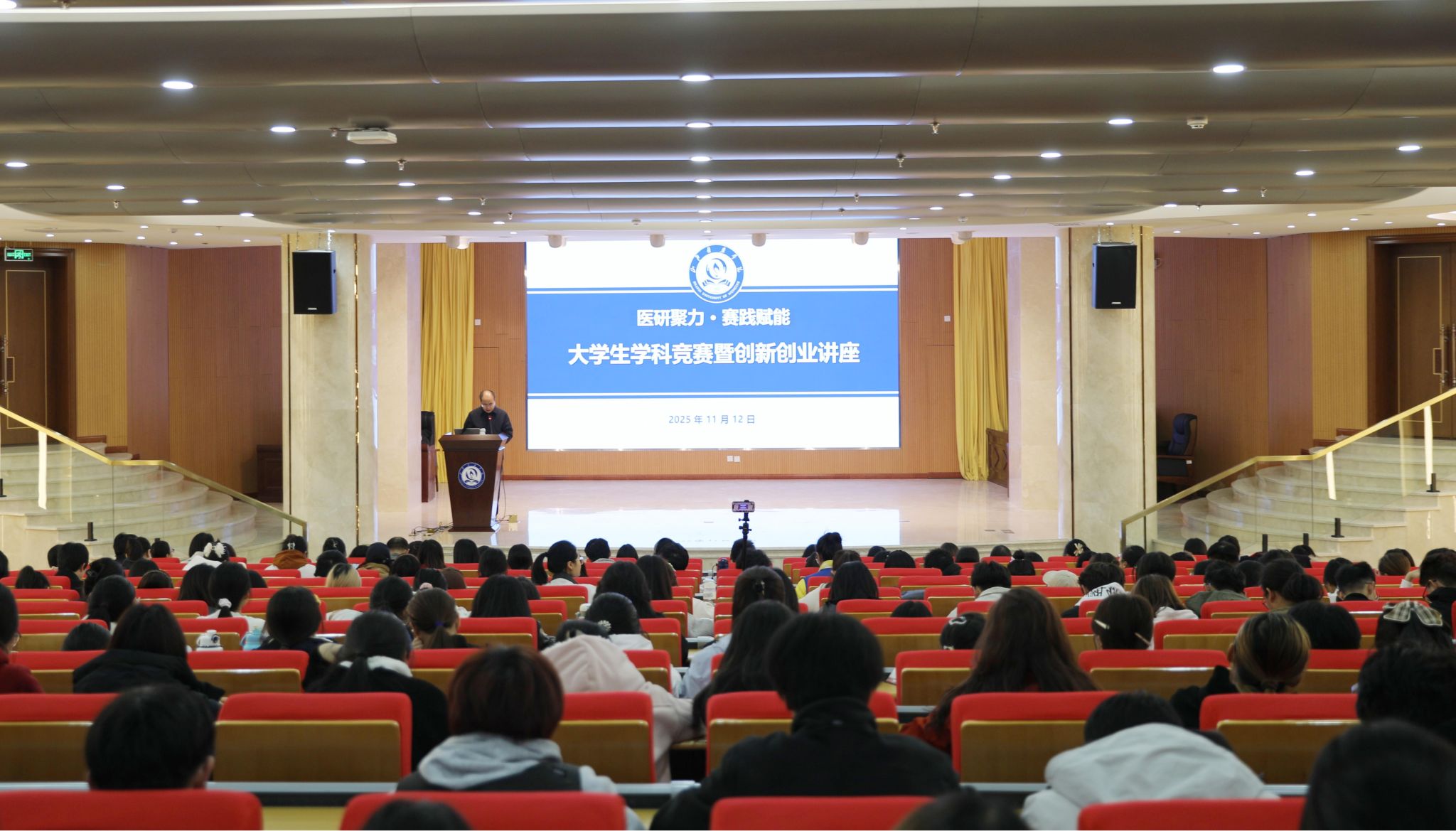 为浓郁校园学术氛围,助力学科竞赛备赛,激发创新创业热情,11月12日下午,学生工作部(处)举办了“医研聚力・赛践赋能:大学生学科竞赛暨创新创业经验交流分享”主题讲座。本次活动特邀山西医科大学国家级创新创业学院副院长周丽霞教授及其优秀学生团队主讲。英国365党委委员、副院长杨利军出席,学生工作部(处)部(处)长常明亮主持,320余名师生现场聆听。