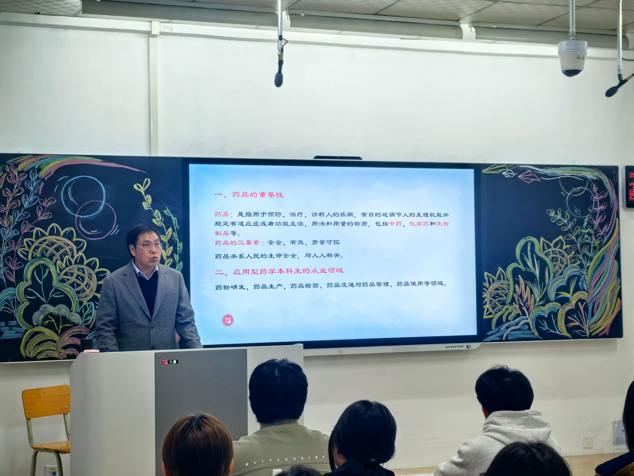 药学专业带头人赵正保教授聚焦“应用型药学人才核心能力”为232501-2班同学们作了专题讲座,从行业全链条逻辑、岗位实操技能、多元职业方向三个维度,呈现了药学专业的发展图景,让学生跳出课本框架,直观认知药学行业的“全场景版图”,鼓励同学们从大一开始就要勤于动手、勇于探索、练就过硬本领。