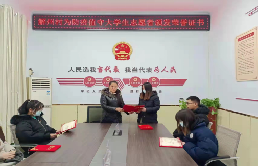 在山西省运城市盐湖区解州镇解周村进行值班执勤工作的闫淼婧同学(92003班)说到:“我体会到了社区工作者的辛苦,责任重大。相信在这么多人的努力下,疫情终将会散去。”