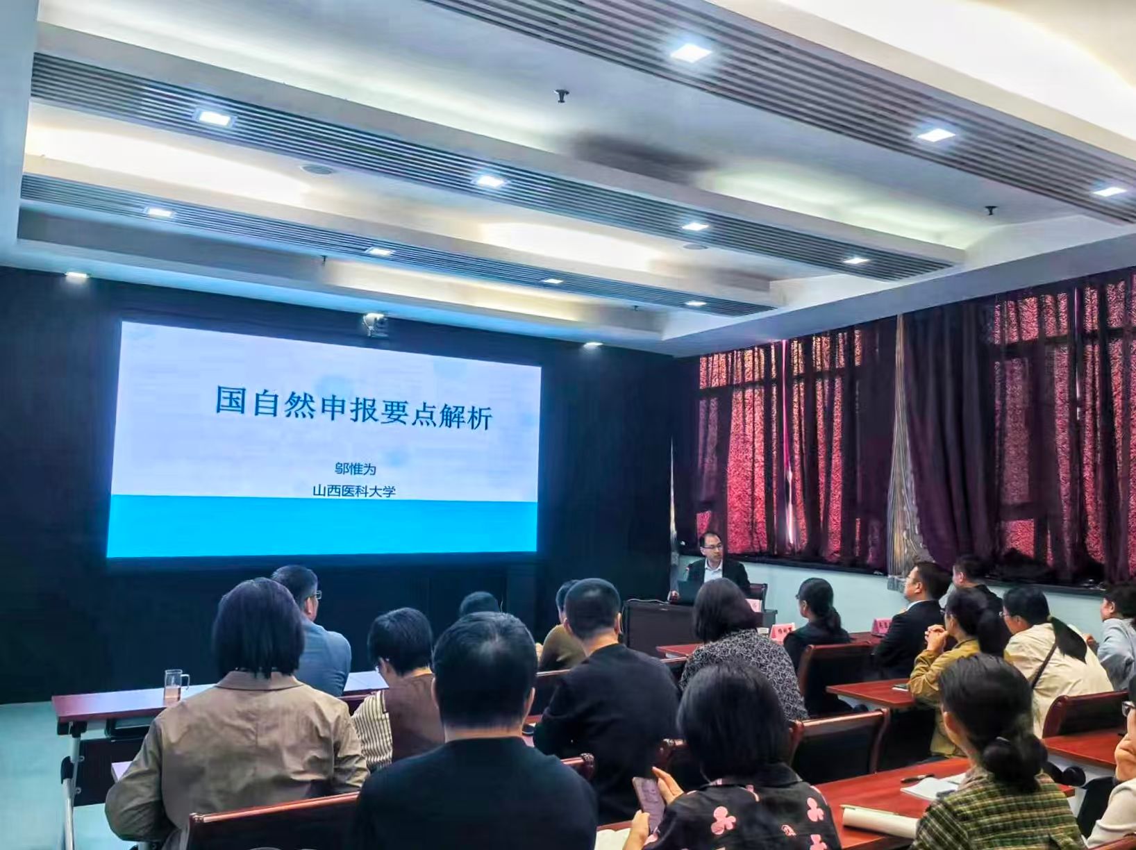 为进一步做好2026年度国家自然科学基金申报工作,提升英国365教师国家自然科学基金的申报质量,9月24日下午,英国365召开2026年国家自然科学基金申报动员会。校党委委员、副院长杨利军出席会议,各系(部)主任、重点学科负责人、新进博士和教师代表等相关人员参加会议。会议特邀山西医科大学范彦英教授和邬惟为博士做专题辅导,科技中心主任吴惠文主持会议。