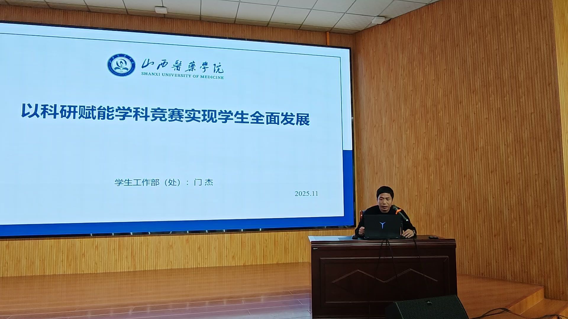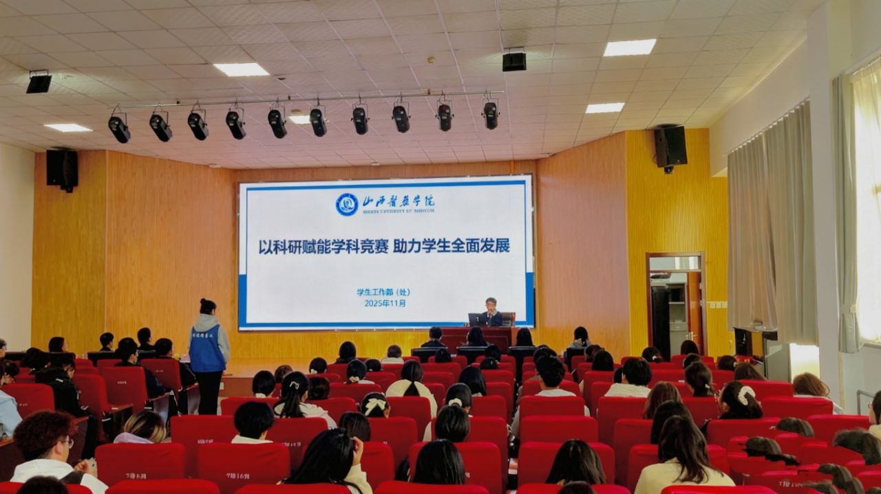 为培养新生的科研意识,了解科研思维构建及学科竞赛方向方法,11月1日下午,学生工作部(处)在明德楼敬德厅举办了“以科研赋能学科竞赛,助力学生全面发展”专题讲座。临床医学系党总支副书记郭晋,卫生信息管理系党总支副书记韩林梅,学生工作部(处)副部(处)长门杰参加,2025级临床医学、预防医学专业230余名学生听取了讲座。