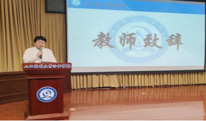 活动最后,学生费澳冉和相茹悦朗诵的诗词《无言良师,亦师亦友》将现场氛围推向了高潮,学生寇梦圆带领全体同学进行郑重宣誓。铮铮誓言中饱含汾院学子对大体老师无限敬重与感恩,更加坚定同学们在医学之路上孜孜以求,砥砺奋进的理想信念。