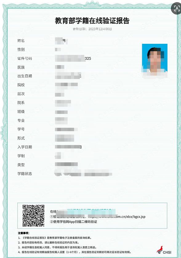 (2)学信网学籍在线验证报告(请在学信网下载PDF格式文件,勿手机截屏,如下方示例图)