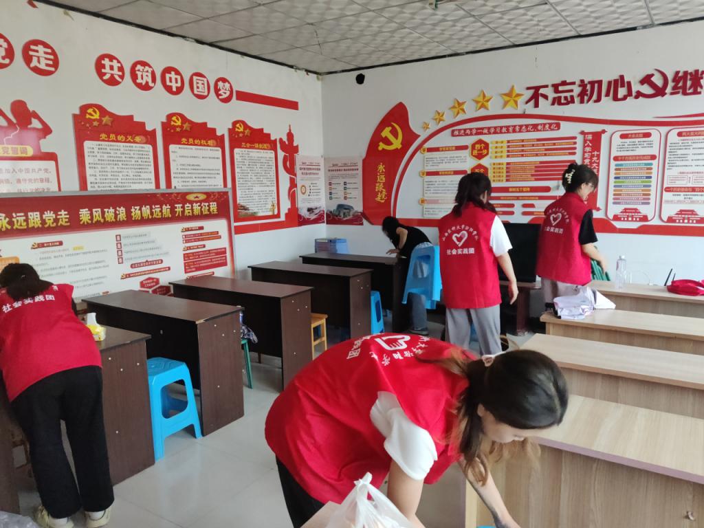 上午,四位村干部带领实践团队带着生活慰问品去探望了村子里的百岁老人、重病患者等困难户,队员们为行动不便的村民提供了上门量血压和测血糖的服务。在慰问的过程中,大家对生活困难的村民深感同情又深受感染,虽然他们生活贫困,或多或少受疾病困扰,但是每个人都积极乐观地面对生活,因为他们坚信未来的生活一定会变得美好。下午,实践队打扫了村委会,摆放凌乱的桌椅,擦拭干净桌上的尘土,虽然疲惫,但也阻挡不了劳动所带来的成就感。