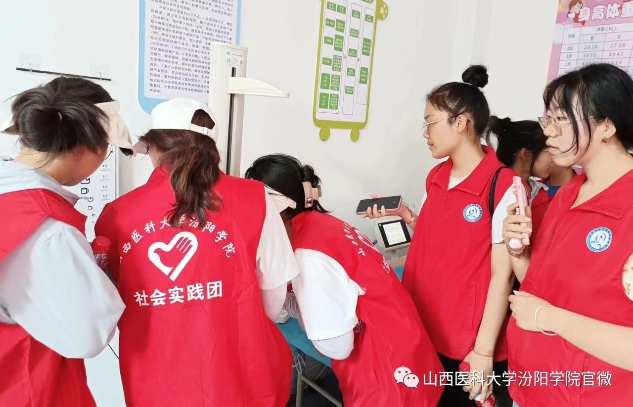 健康服务是医学生社会实践活动的重要内容。从7月11日开始,连续3天,同学们在马村镇沟头村的村委大院里,给村民们测血压、血氧,详细询问他们的生活饮食习惯以及既往病史治疗、用药情况等。