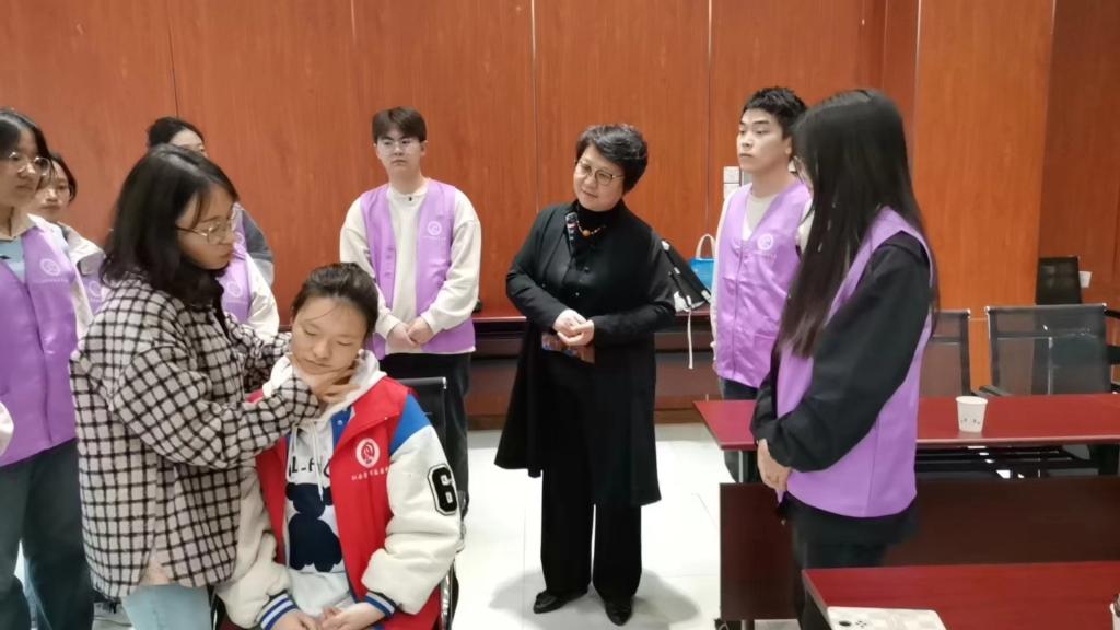 同学们对学员们进行了“一对一”或“一对二”的帮助。课堂上,帮助学员理解课程知识,辅助教师讲解穴位和手法,担当教学模特,协助教师讲好实践课程;课堂外,帮助学员做好签到、上下楼梯、就餐等。